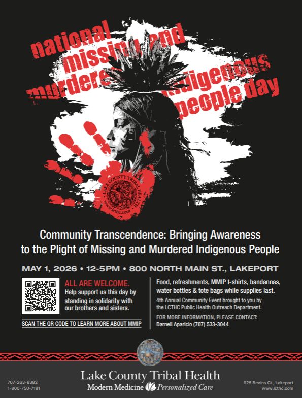 Join LCTHC's Public Health Outreach Department in raising awareness for Missing and Murdered Indigenous People at the 4th Annual MMIP Day on Friday, May 1st at Xabatin Community Park.